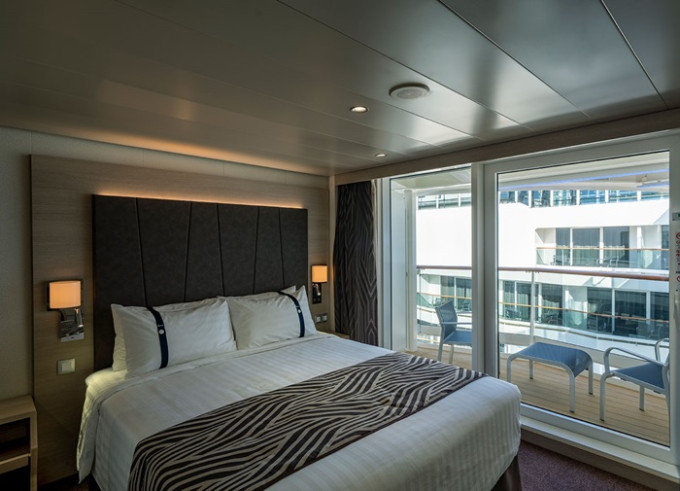 Kajuta s balkónem: 16 - 17 m², kajuta s manželskou postelí (na požádání 2 oddělené postele) a rozkládací pohovka. Klimatizace, koupelna se sprchou nebo vanou a WC, toaletní stolek, prostorná skříň, interaktivní TV, telefon, sejf, vysoušeč vlasů, virtuální asistentka ZOE. Balkony se stolkem a židlemi. Některé kajuty mají omezený výhled; kajuty PR1, PR2, PR3, PV mají výhled na promenádu.