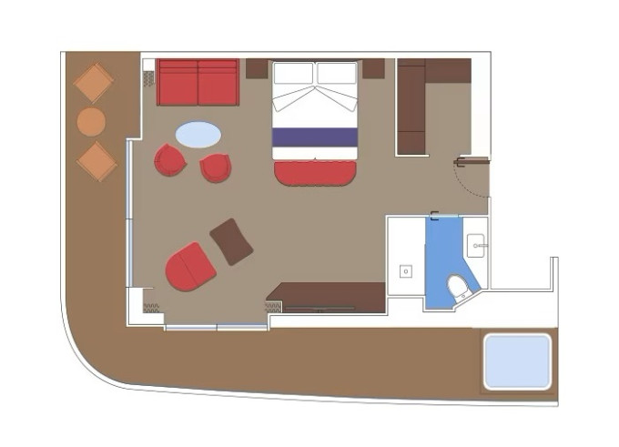 | SXJ - Grand Suite Aurea s vířivkou 35 m² + terasa 37 - 46 m². Vířivka. 15 - 16. paluba. paluba. Cenový model Aurea | 135 872 Kč 135 872 Kč za osobu |