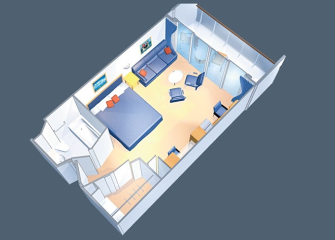 | 3D - Kajuta s balkonem 15,5 m² / balkon 2,5 m². 7. až 10. paluba. Max 4 osoby. | 34 726 Kč 11 575 Kč za osobu | ||