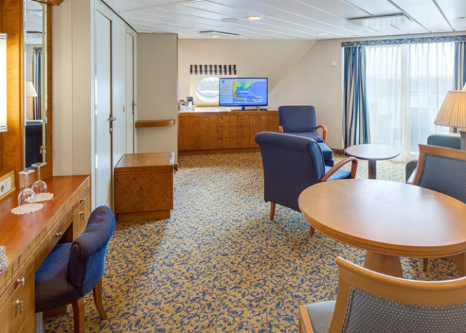 | OS - Owner’s Suite s balkonem 54 m² / balkon 41 m². Výhody Royal Suite Class. 10. paluba. Max 4 osoby. | 151 281 Kč 151 281 Kč za osobu |
