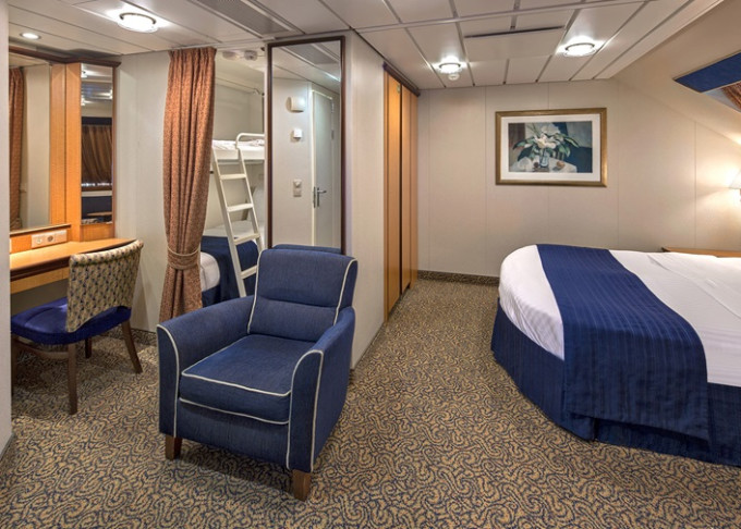 | 1K - Velká vnější kajuta Ultra Spacious 24,5 m². Neotevíratelné okno. 7/8. paluba. Max. 6 osob. | 85 036 Kč 85 036 Kč za osobu |