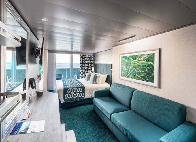 Kajuta s balkónem: 17 - 22 m² + balkon 6 - 8 m²; kajuta s manželskou postelí (na požádání 2 oddělené postele) a rozkládací pohovka. Klimatizace, koupelna se sprchou nebo vanou a WC, toaletní stolek, prostorná skříň, interaktivní TV, telefon, sejf, vysoušeč vlasů, virtuální asistentka ZOE. Balkony se stolkem a židlemi. Některé kajuty mají omezený výhled.