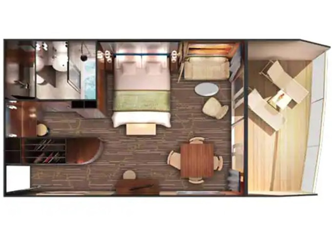 | SN - Aft-facing Penthouse Suite 33-34 m² / balkon 6-7 m². Výhody Suite. 8/9. paluba - vzadu. Max 3 osoby. | 304 441 Kč 152 220 Kč za osobu | ||