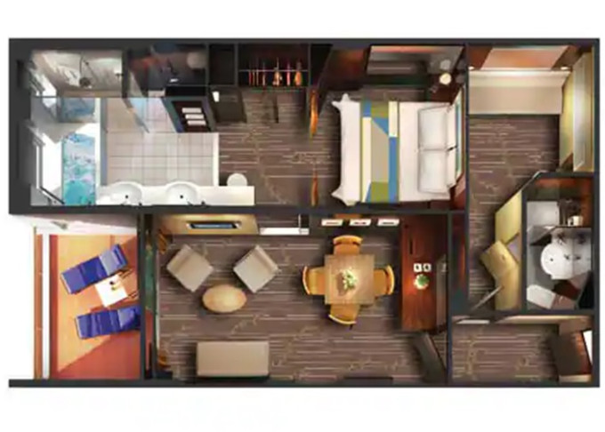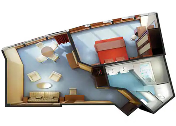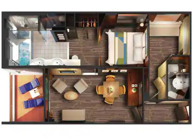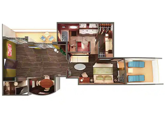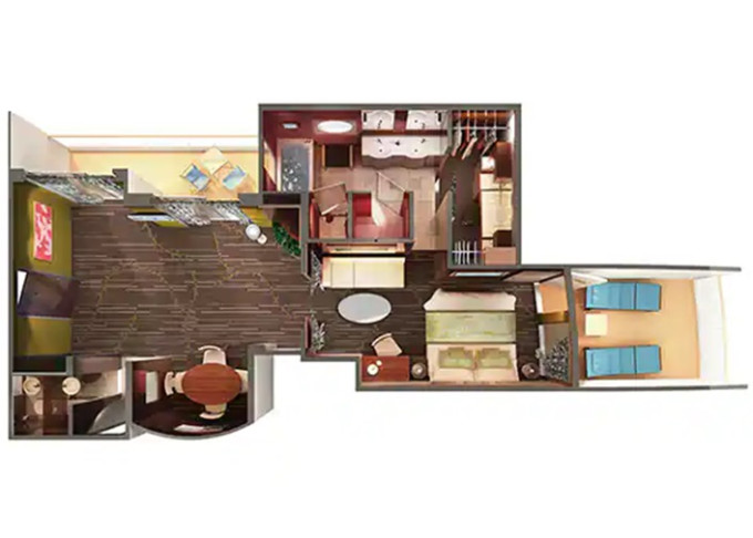 | S6 - Deluxe Owners Suite 62-68 m². Celoplošné neotevíratelné okna. Výhody Suite.12. paluba - vpředu. Max 4-6 osob. | 449 116 Kč 224 558 Kč za osobu | ||