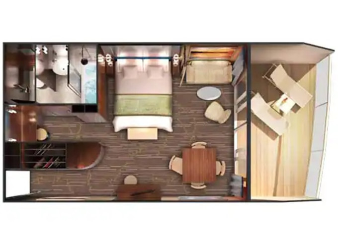 | SF - Forward-facing Penthouse 46-55 m² / balkon 12-25 m². Výhody Suite. 9/10. paluba - vpředu. Max 3 osoby. | 286 193 Kč 143 097 Kč za osobu | ||