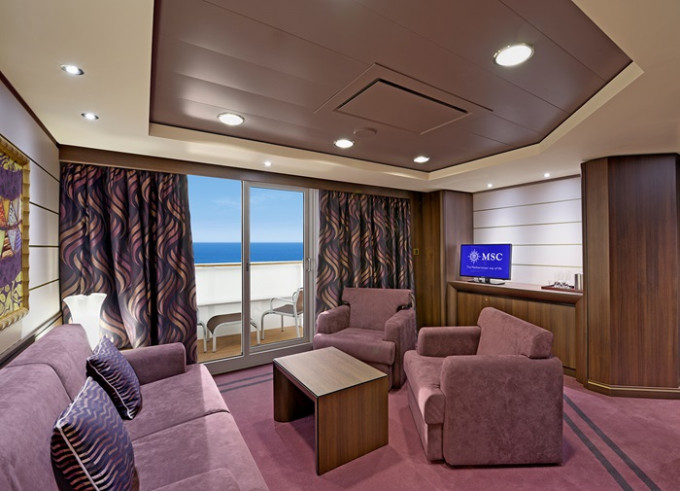 | YC2 - Yacht Club Executive & Family Suite s oknem 40-51 m². Neotevíratelné panoramatické okna. Oddělený obývací pokoj a ložnice. 12. paluba. Cenový model MSC Yacht Club. | 288 700 Kč 144 350 Kč za osobu | ||