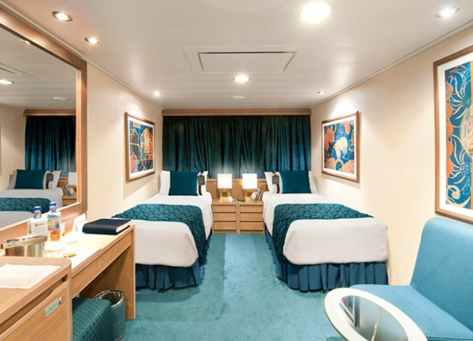 Kajuta vnitřní: 13 m², kajuta s manželskou postelí (na požádání 2 oddělené postele) a 1-2 vyklápěcí horní lůžka. Klimatizace, koupelna se sprchou a WC, toaletní stolek, skříň, interaktivní TV, minibar, sejf, telefon, vysoušeč vlasů.