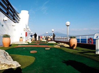 - sportovní aktivity na otevřených palubách (jogging, basketbal, fotbal, tenis), bazény a lehátka