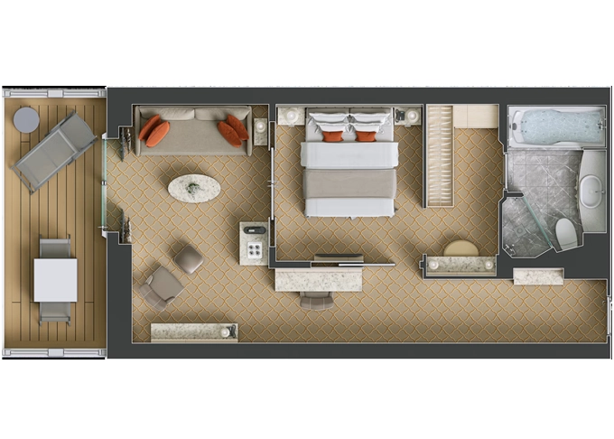| SV - Superior Veranda Suite 36 m² / balkon 6 m². Vyšší paluby. Ložnice s obývací částí. | 380 833 Kč 190 416 Kč za osobu |