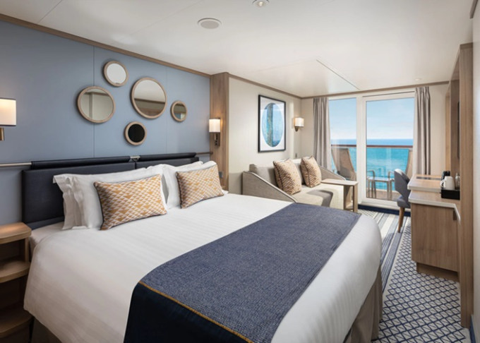 | B4 - Suite s balkonem 37 m² + balkon 11 m². Výhody Suite. 10 až 14. paluba. Max 3-4 osoby. Ložnice, obývací izba, mramorová koupelna s vířivkou. | 241 278 Kč 120 639 Kč za osobu |