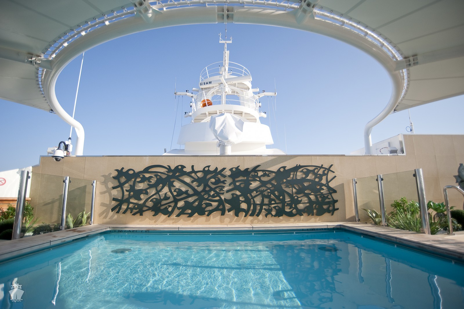 Třípatrový Yacht Club je exkluzivním privátním místem pro náročné klienty. Součástí Yacht Clubu jsou nejen různé luxusní typy kajut a suite, ale také venkovní paluba s lehátky a bazénem, salon s barem Top Sail Lounge s panoramatickými výhledy a restaurace. Club má i vlastní recepci se službami consierge a hostům je k dispozici komorník.