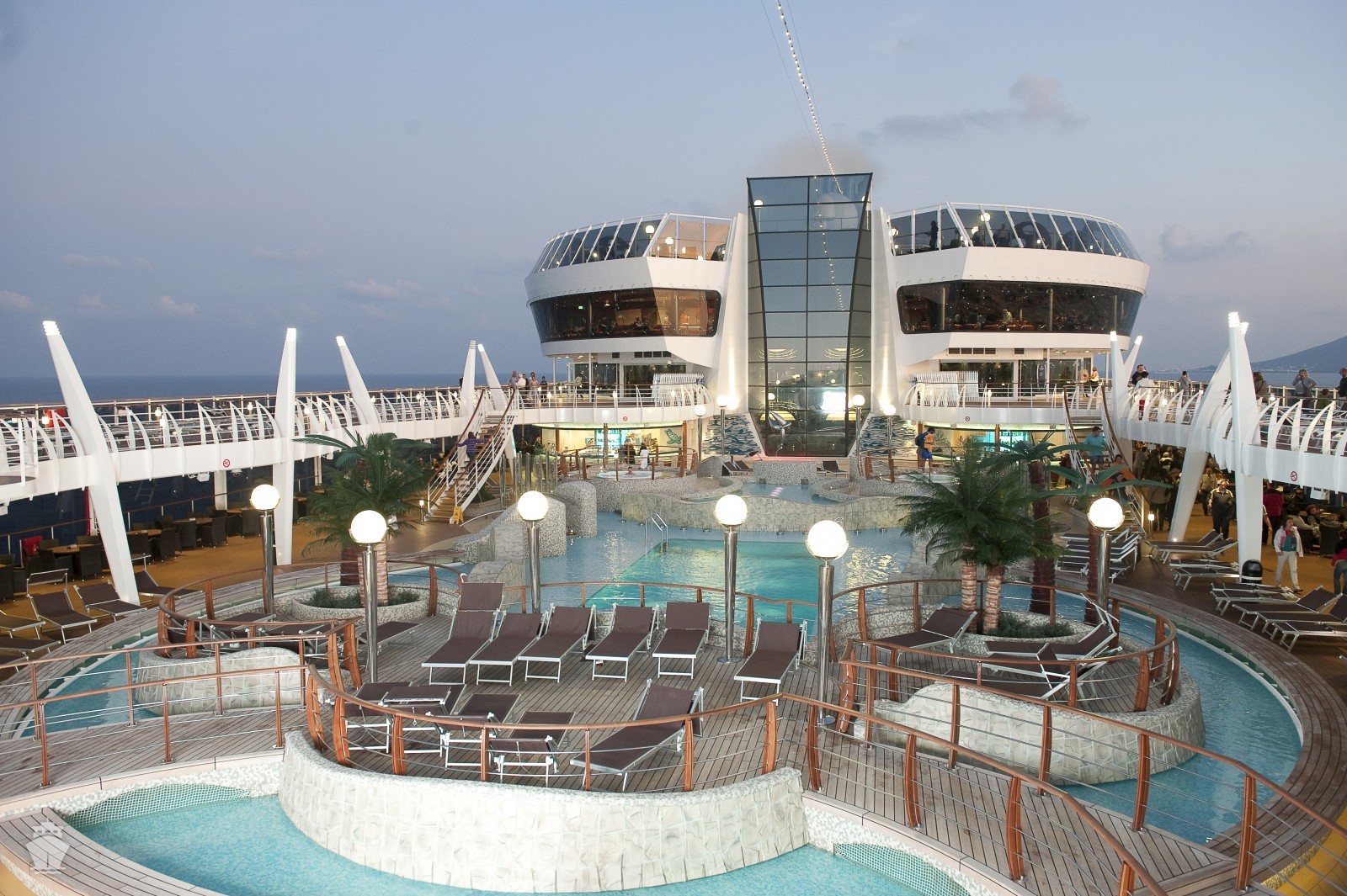 - sportovní aktivity na otevřených palubách (jogging, basketbal, fotbal, tenis), bazény a lehátka