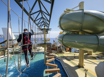 - sportovní aktivity na otevřených palubách (jogging, basketbal, fotbal, tenis), bazény a lehátka