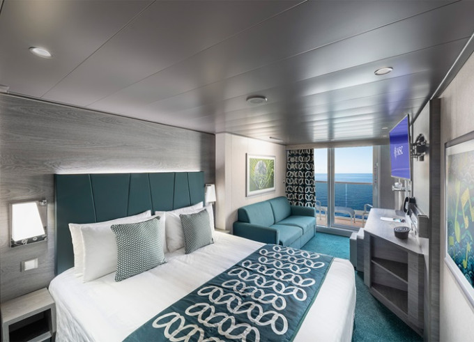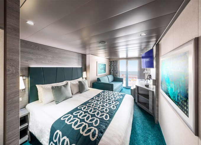 Kajuta s balkónem: 19 - 22 m², kajuta s manželskou postelí (na požádání 2 oddělené postele) a rozkládací pohovka. Klimatizace, koupelna se sprchou nebo vanou a WC, toaletní stolek, prostorná skříň, interaktivní TV, telefon, sejf, vysoušeč vlasů, virtuální asistentka ZOE. Balkony se stolkem a židlemi. Některé kajuty mají omezený výhled.