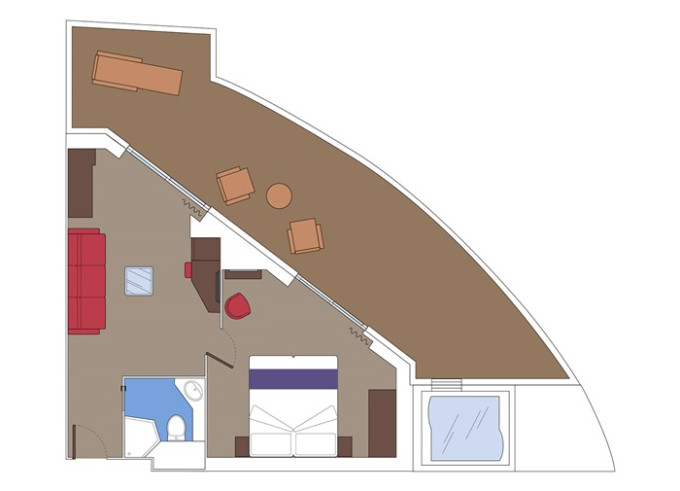 | YC1 - Yacht Club Deluxe Suite 23 m² + balkon 5 m². Ložnice s obývací částí, šatník. 14.-18. paluba. Cenový model MSC Yacht Club. | 438 008 Kč 438 008 Kč za osobu | ||