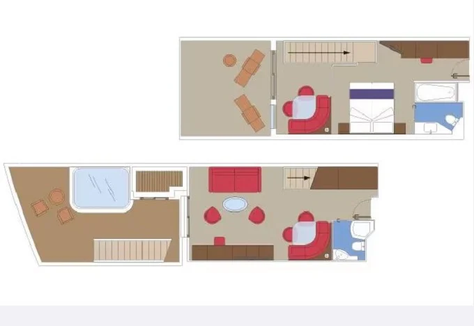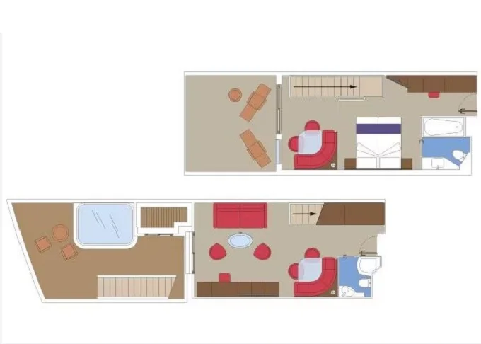 | YCD - Yacht Club Duplex Suite 46 m² + balkon 6 m². 2 podlaží, 2 koupelny (1 s vanou) Max 4 osoby. 16. paluba. Cenový model MSC Yacht Club. | 210 510 Kč 105 255 Kč za osobu | ||