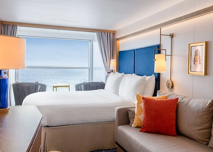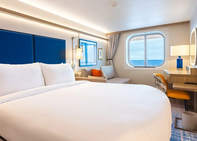 | L5 - Kajuta s oknem Panoramic Ocean View 24 m². Celoplošní neotevíratelné okno, výhled na moře. 14. paluba vpředu. Max 3 osoby. | 113 598 Kč 113 598 Kč za osobu |