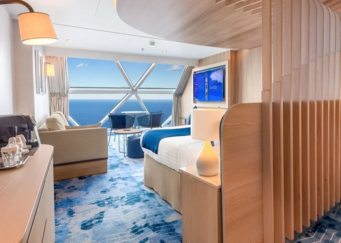 | VP - Panoramic Suite 38-41 m². Celoplošné panoramatické neotevíratelné okno s výhledem na moře. 16, 17. paluba vpředu. Max 4 osoby. Výhody Suite Sky Class. | 262 524 Kč 262 524 Kč za osobu | ||