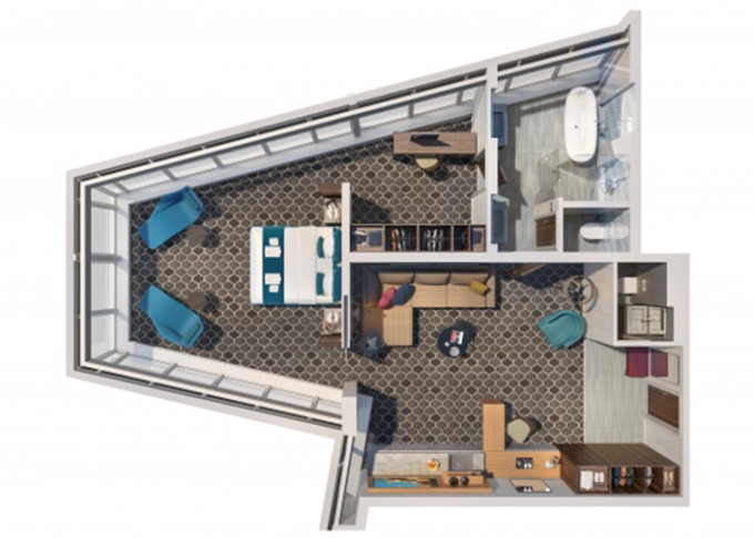 | A1 - Suite AquaTheater Spacious / 2 ložnice 76,5 m² / balkon 67 m². Výhody Royal Suite Class. 8. paluba. Max 8 osob. | 486 213 Kč 486 213 Kč za osobu | ||