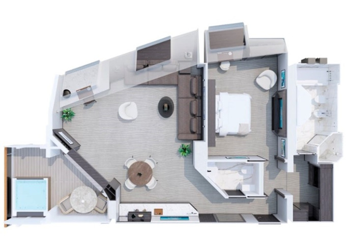 | Cove Residence Suita 56 m² + terasa 14-24 m² s vířivkou.Ložnice oddělená od obytné části. Maximální kapacita 3 dospělé osoby nebo 2 dospělé osoby a 2 děti do 17,99 let. | 587 285 Kč 146 821 Kč za osobu | ||