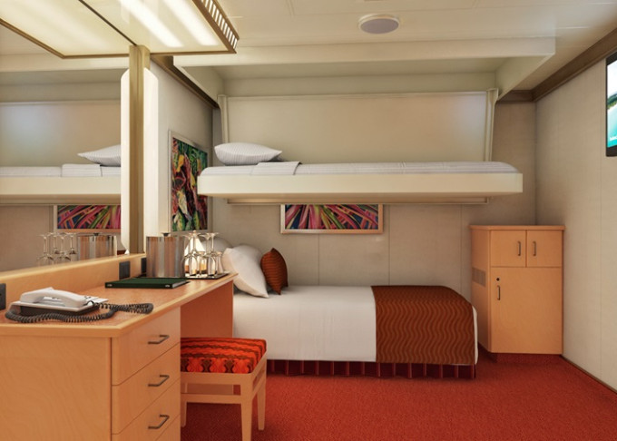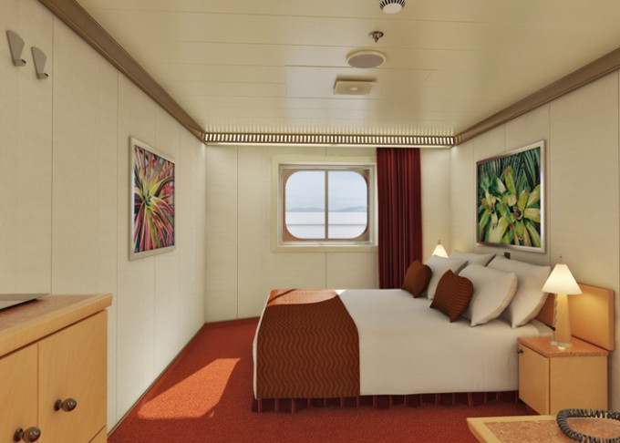 Základní vybavení všech kabin: koupelna se sprchou a WC, TV s plochou obrazovkou, telefon, elektrická zásuvka 110 AC, regulovatelná klimatizace, postele Carnival Comfort, vysoušeč vlasů, bezpečnostní schránka, mini chladnička (není ve všech kajutách).