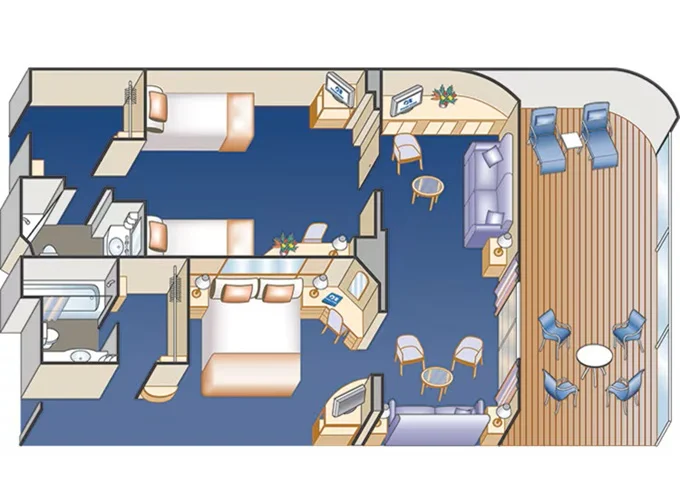 | S6 - Vista Suite s balkonem 50 m² (včetně balkona). Výhody Suite. Max 3 osoby (gauč). | 279 075 Kč 139 537 Kč za osobu | ||
