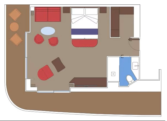 • ubytování v plně vybavené kajutě: vlastní koupelna se sprchou a WC, interaktivní TV, telefon, trezor, vysoušeč vlasů, regulovatelná klimatizace, minibar (za poplatek), Wi-fi (za poplatek)