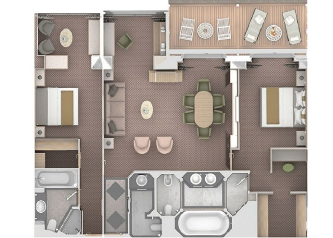 | S2 - Silver Suite 2 104 m² (včetně balkona). 2 ložnice, 2 koupelny, obývací a jídelní část. | 636 392 Kč 636 392 Kč za osobu |