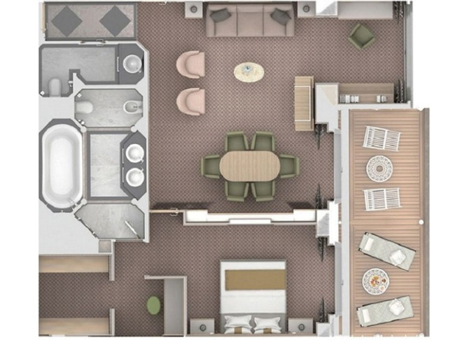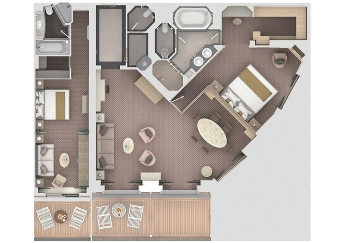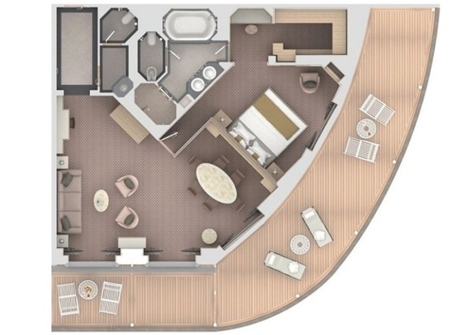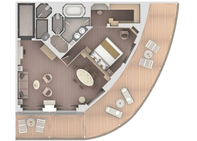 | SV - Superior Veranda Suite 36 m² / balkon 6 m². Vyšší paluby. Ložnice s obývací částí. | 230 504 Kč 115 252 Kč za osobu | ||