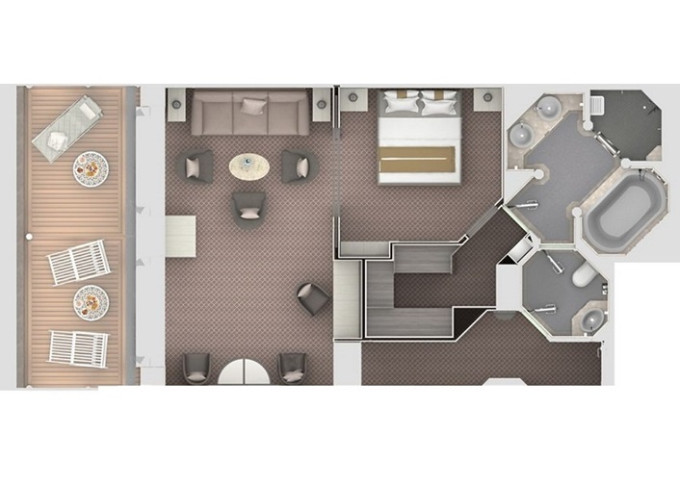 | SV - Superior Veranda Suite 36 m² / balkon 6 m². Vyšší paluby. Ložnice s obývací částí. | 201 691 Kč 201 691 Kč za osobu | ||