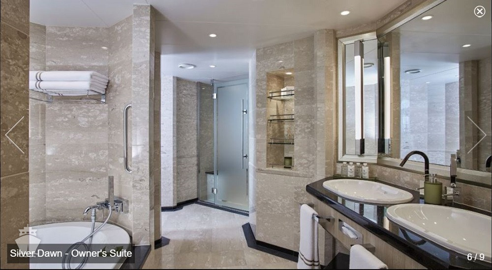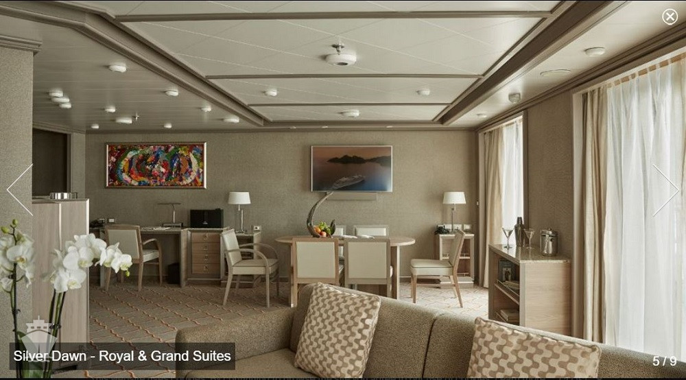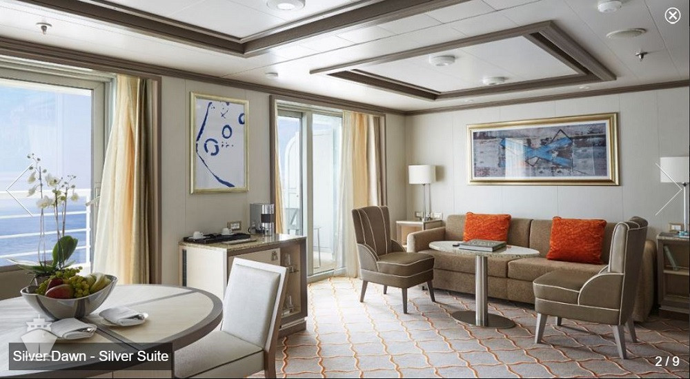 Prostorné suite (apartmány) na lodích Silversea mají výhled na moře a mnohé mají vlastní teakovou verandu. Jsou zařízeny elegantním nábytkem, TV s bohatým výběrem satelitních programů a s interaktivní knihovnou médií, luxusním ložním prádlem, plyšovými župany a pantoflemi a různými doplňky. Nechybí dobře zásobený bar.