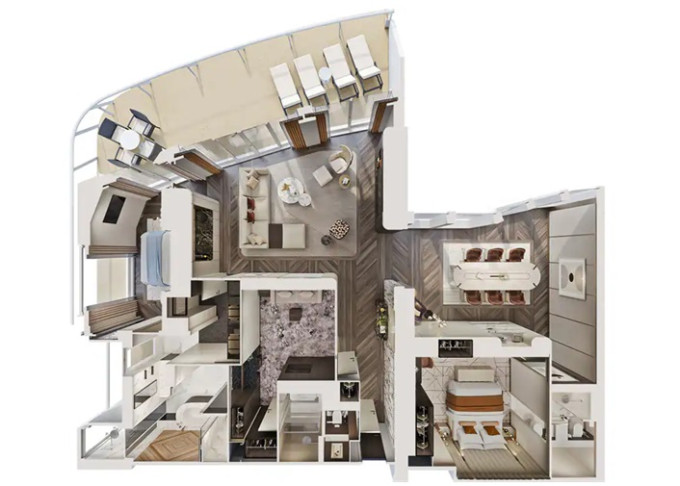 | H2 - The Haven Deluxe Owner's Suite 136 m² / balkon 45 m². Výhody The Haven. 18. paluba vpředu. Max 6 osob. | 387 147 Kč 193 573 Kč za osobu |