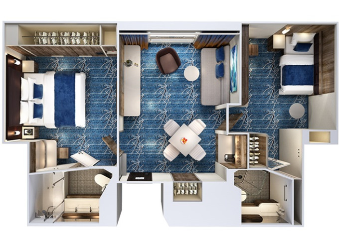 | HH - The Haven Family Villa Suite 47 m² / balkon 8 m². Výhody The Haven. 15. paluba - vpředu. Max 5 osob. | 157 545 Kč 78 772 Kč za osobu | ||