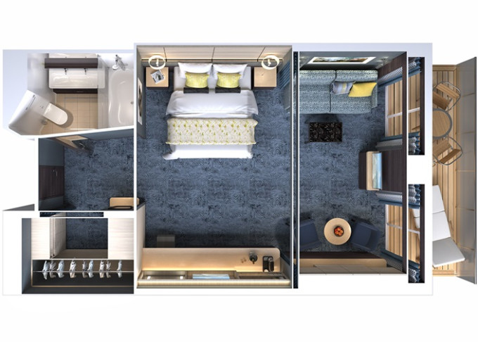 | H5 - The Haven Family Villa - 2 ložnice 58 m² / balkon 12 m². Výhody The Haven. 17. paluba - vpředu. Max 6 osob. | 240 927 Kč 120 463 Kč za osobu | ||