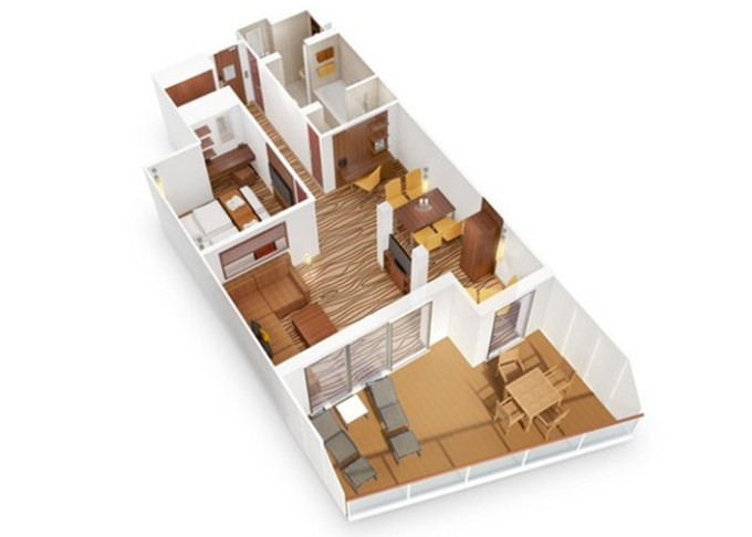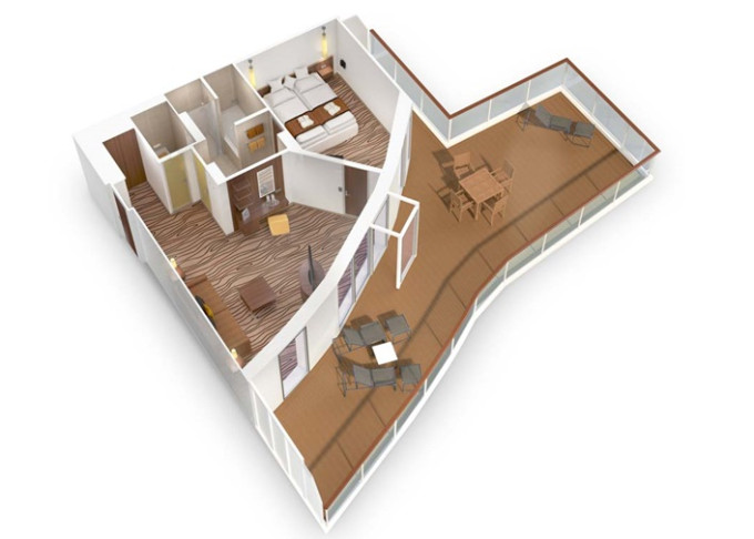 - suite, Penthouse Suite, cca 34 - 115 m² (z toho balkón či privátní paluba 6 - 72 m²)