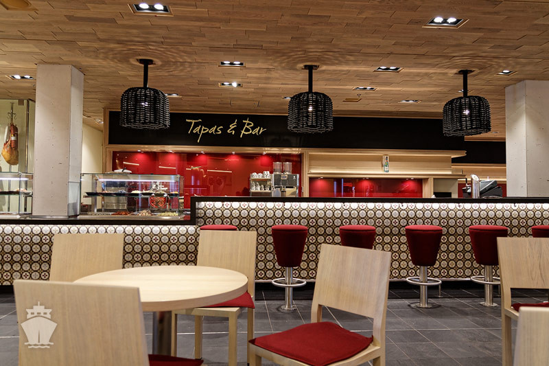 - AIDA Plaza přes dvě paluby s bary a obchůdky slouží jako místo setkání.