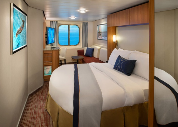 Základní vybavení všech kajut: koupelna s WC, fén, toaletní potřeby; lůžka, dostatek úložných prostor, toaletka se zrcadlem, individuálně nastavitelná klimatizace, TV, župany, trezor, minibar.
