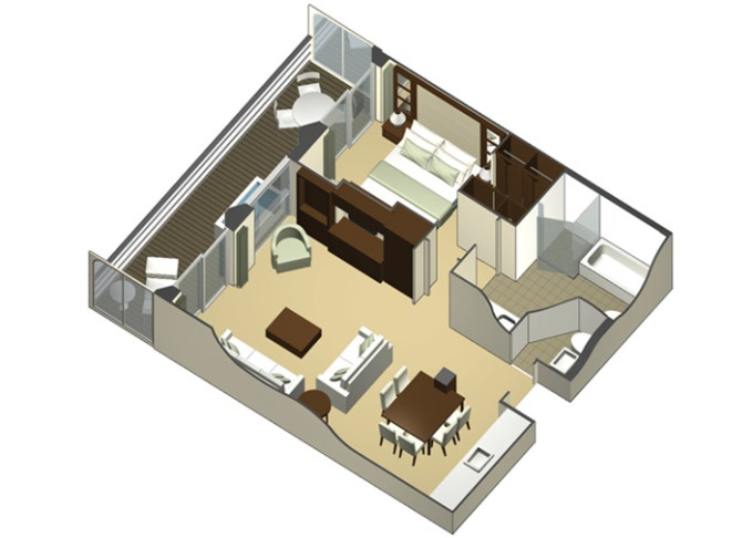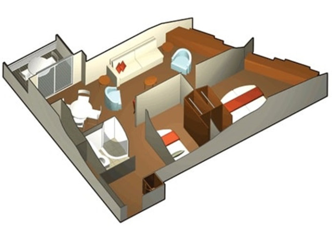 | S1 - Sky Suite 28 m² + balkon 7 m². 6. až 12. paluba. Max 4 osoby. Výhody Suite. | 310 680 Kč 155 340 Kč za osobu | ||