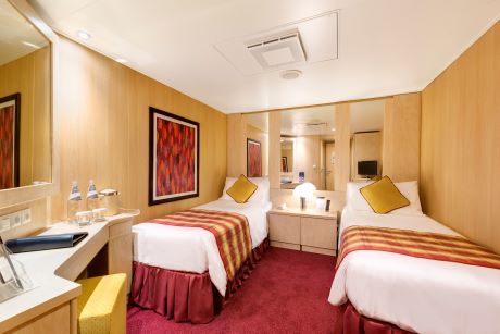 Kajuta vnitřní: 12 - 13 m², kajuta s manželskou postelí (na požádání 2 oddělené postele) a 1-2 vyklápěcí horní lůžka. Klimatizace, koupelna se sprchou a WC, toaletní stolek, skříň, interaktivní TV, minibar, sejf, telefon, vysoušeč vlasů.