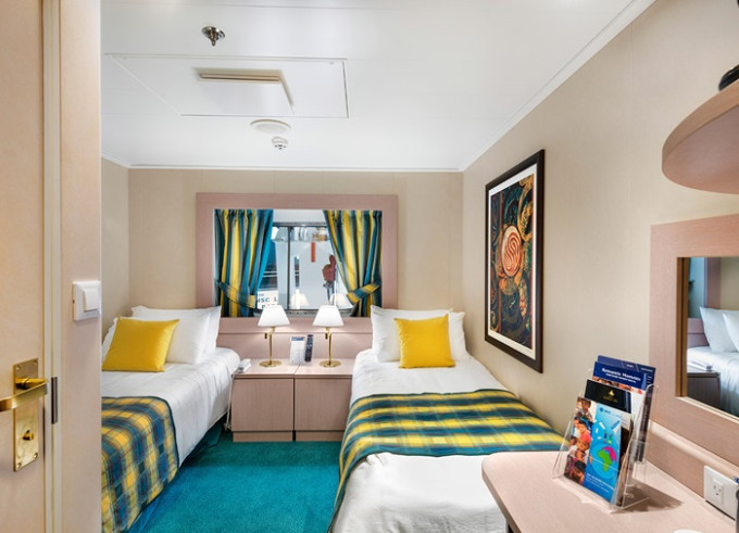 Kajuta oknem: 12 - 13 m², kajuta s manželskou postelí (na požádání 2 oddělené postele) a 1-2 vyklápěcí horní lůžka. Klimatizace, koupelna se sprchou a WC, toaletní stolek, skříň, interaktivní TV, minibar, sejf, telefon, vysoušeč vlasů, neotevíratelné okno. Některé kajuty v kategorii venkovní Bella a Junior Ocean mají omezený výhled.
