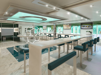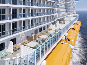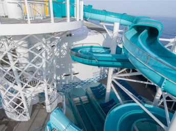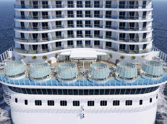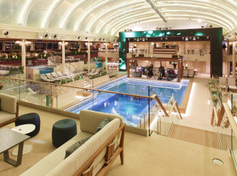 - 3 bazény na horní palubě, 1 bazén s posuvnou prosklenou střechou