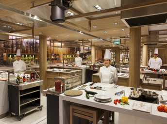 Tematické bary - Ferrari Spazio Bolicine Sekt bar, vinný bar Frescobaldi se someliérem, Campari bar, Aperol Spritz bar, Sunset bar, Nutella bar, Amarillo zmrzlinový bar, kavárna Café Vergnano