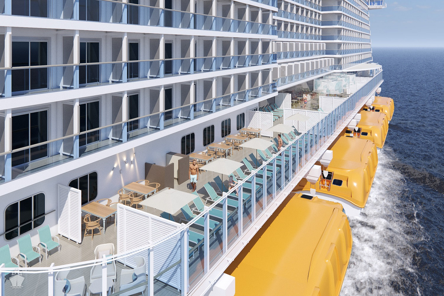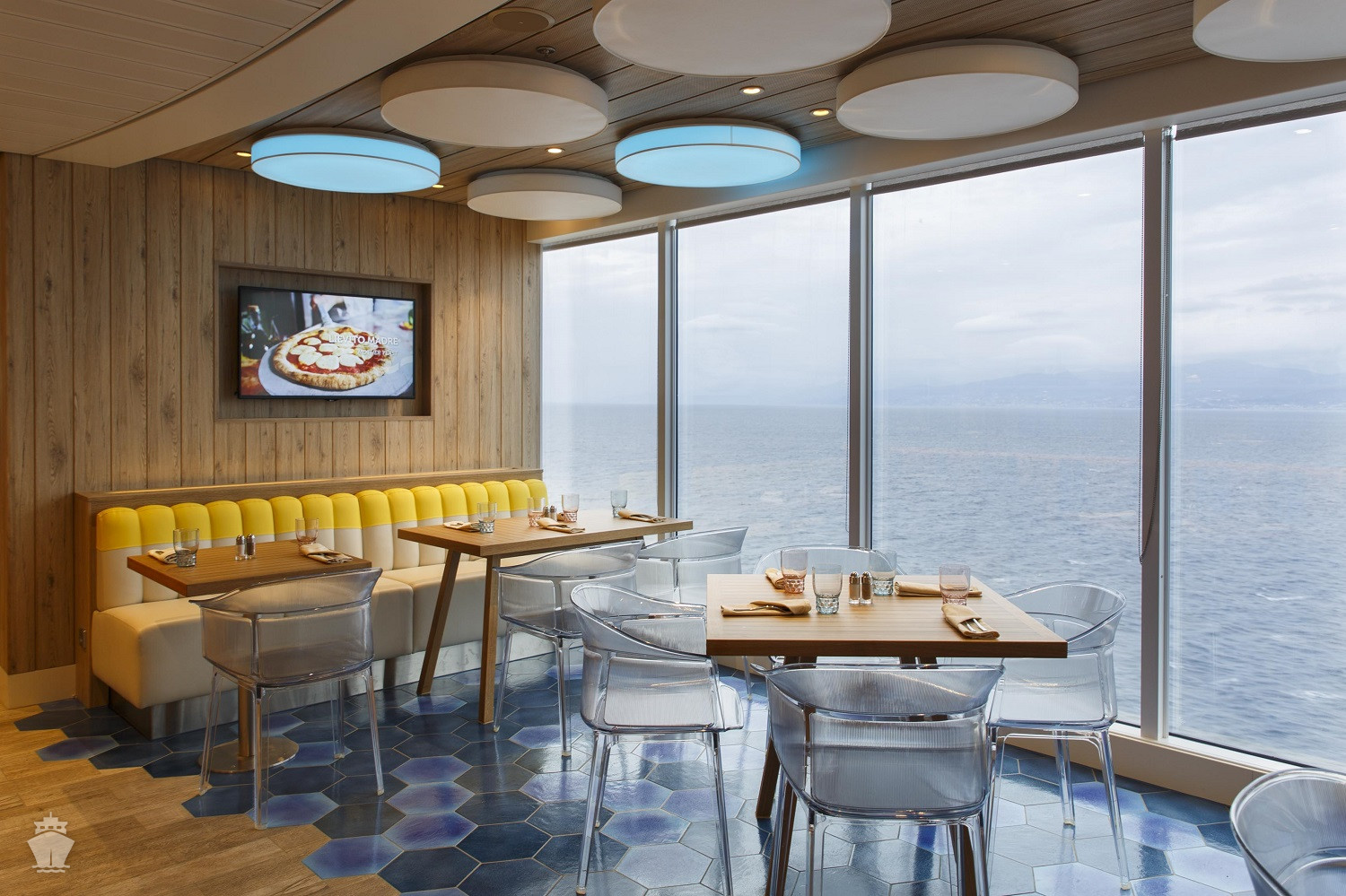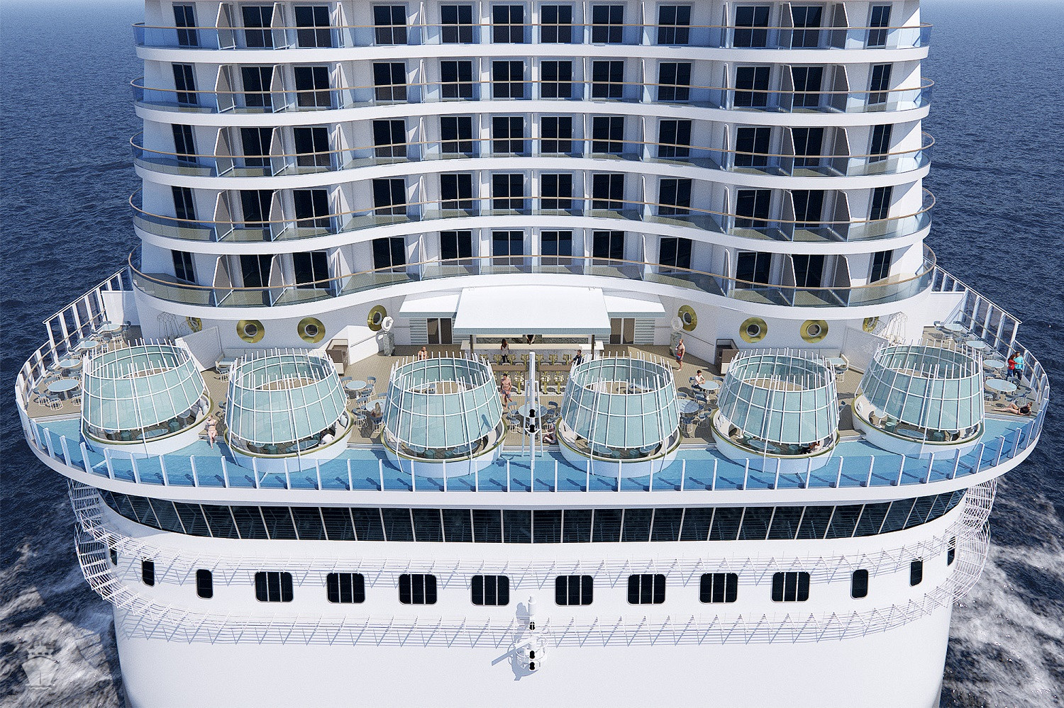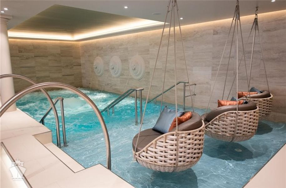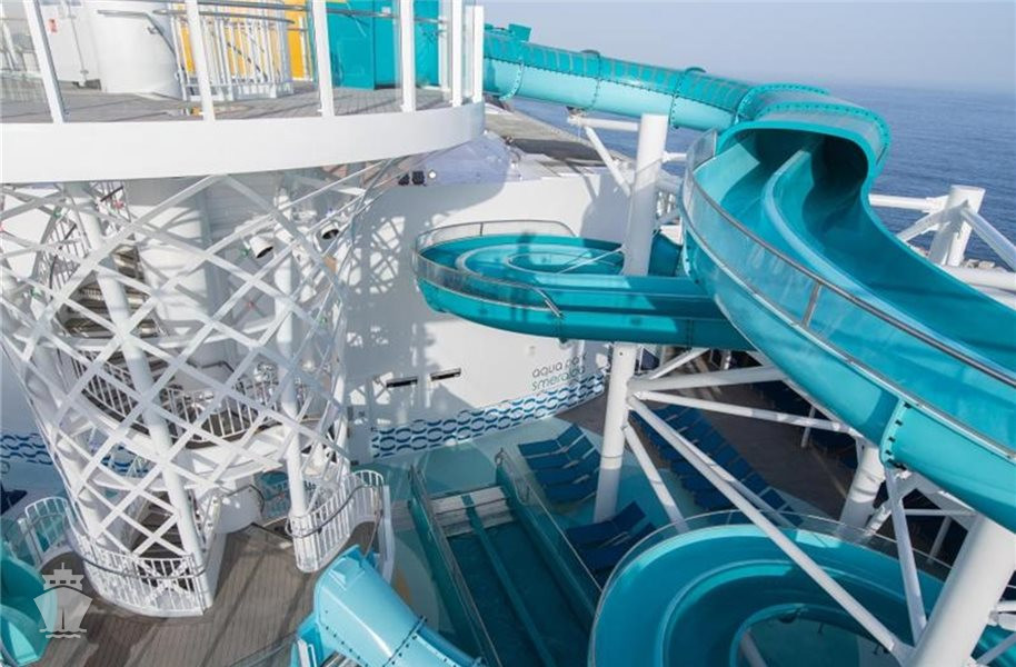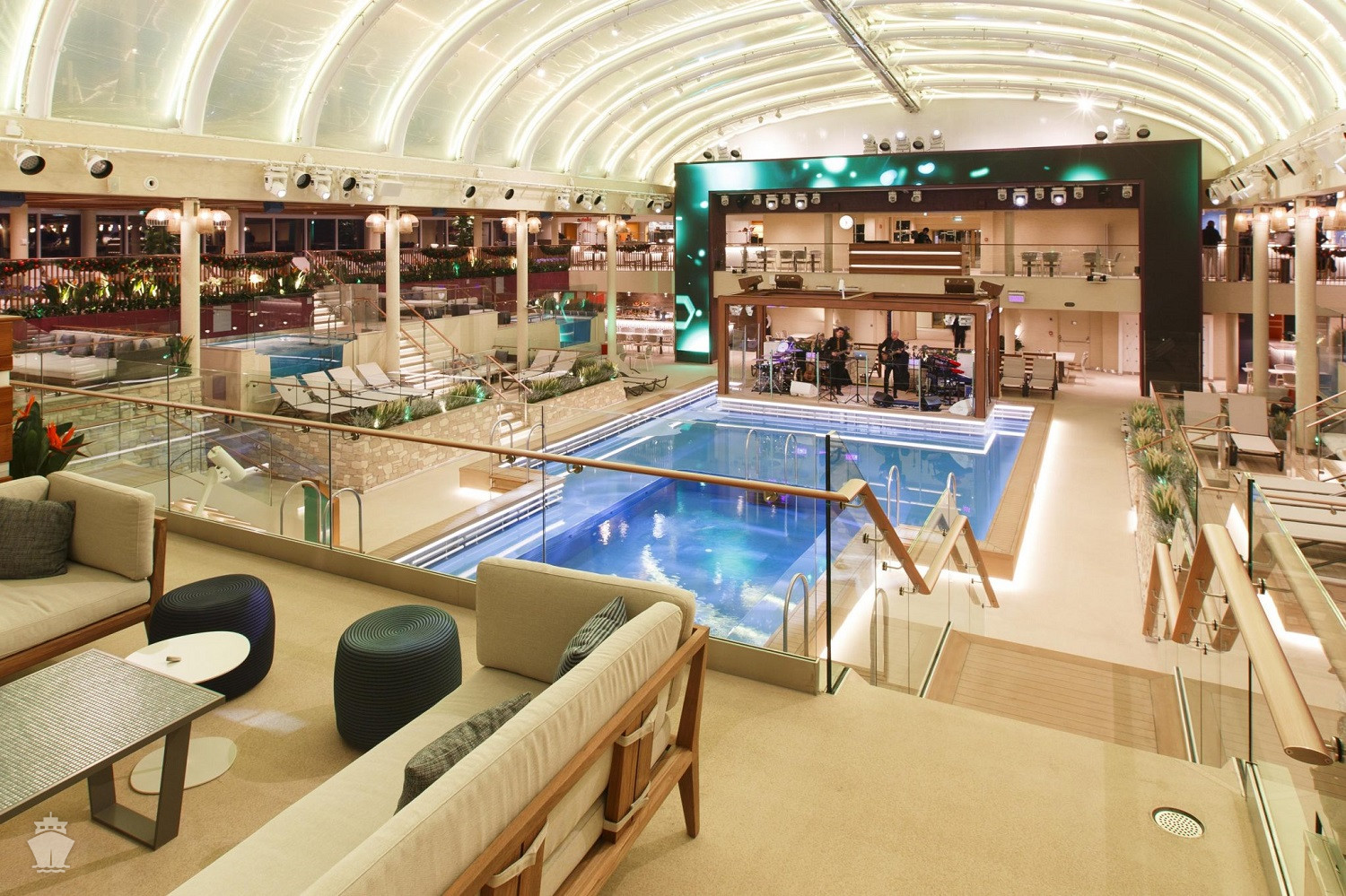 - 3 bazény na horní palubě, 1 bazén s posuvnou prosklenou střechou