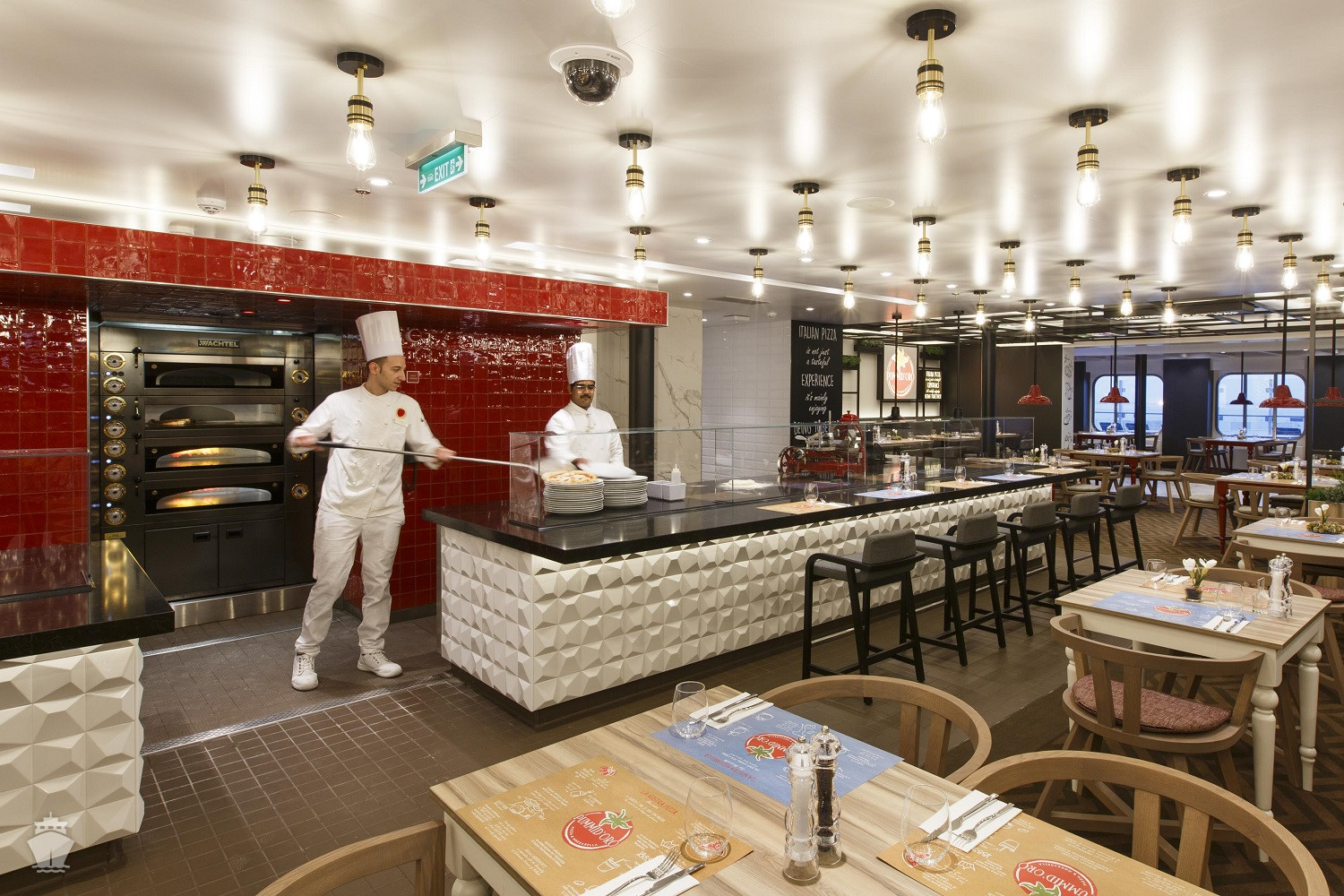 Tematické bary - Ferrari Spazio Bolicine Sekt bar, vinný bar Frescobaldi se someliérem, Campari bar, Aperol Spritz bar, Sunset bar, Nutella bar, Amarillo zmrzlinový bar, kavárna Café Vergnano