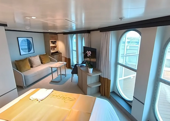 | B4 - Suite s balkonem 37 m² + balkon 11 m². Výhody Suite. 10 až 14. paluba. Max 3-4 osoby. Ložnice, obývací izba, mramorová koupelna s vířivkou. | 176 185 Kč 88 093 Kč za osobu | ||