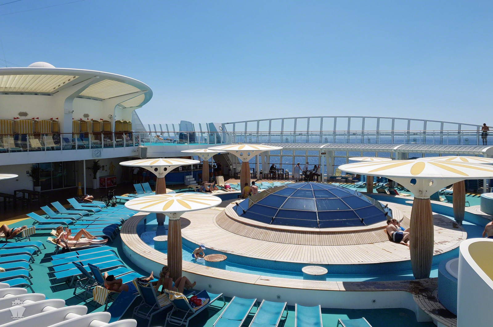 • používání zařízení lodě: bazény, vířivky a lehátka, sauna*, plážové osušky, posilovna