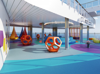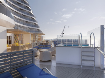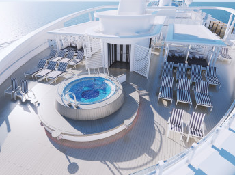 - 3 bazény na horní palubě, 1 bazén s posuvnou prosklenou střechou