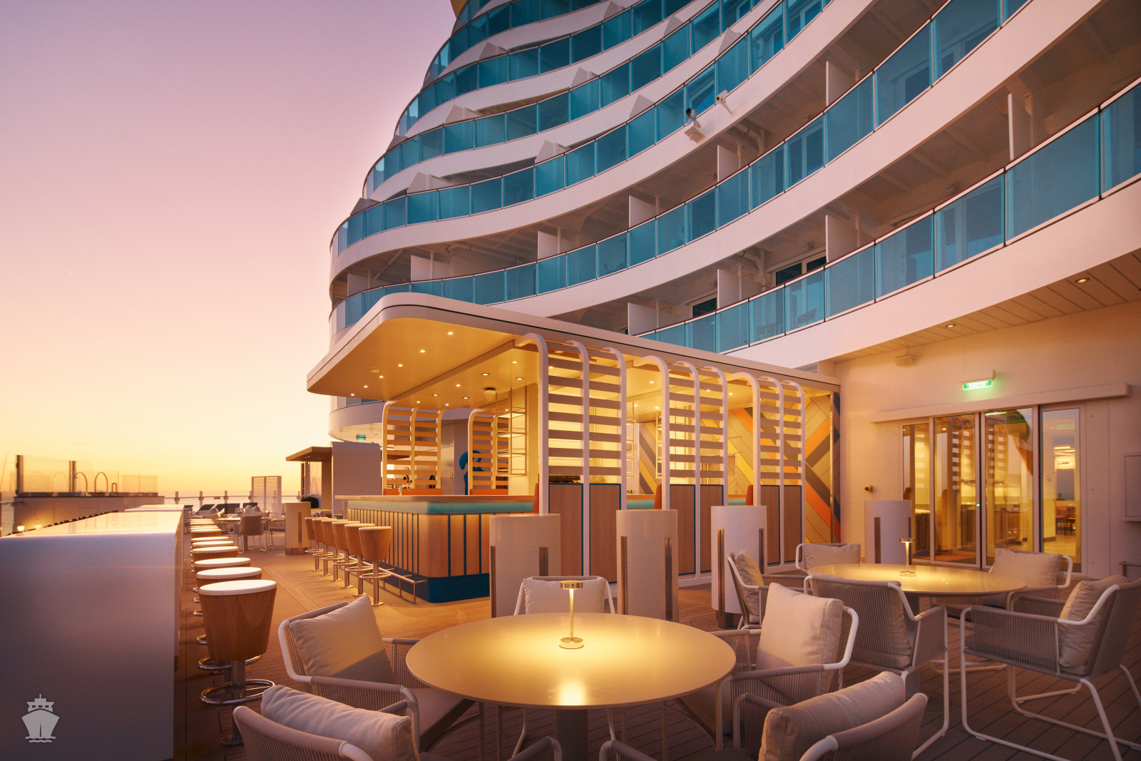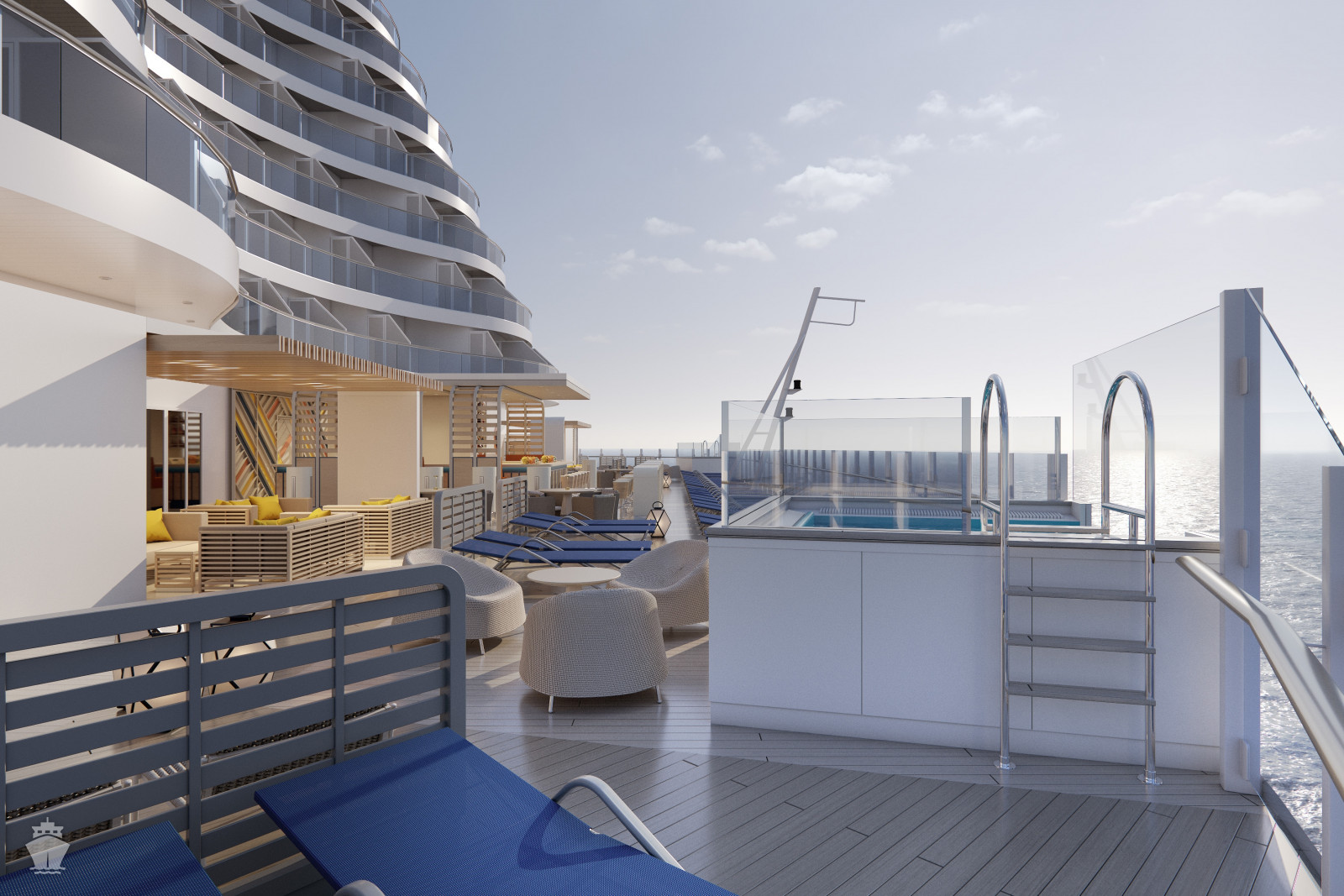 - 3 bazény na horní palubě, 1 bazén s posuvnou prosklenou střechou