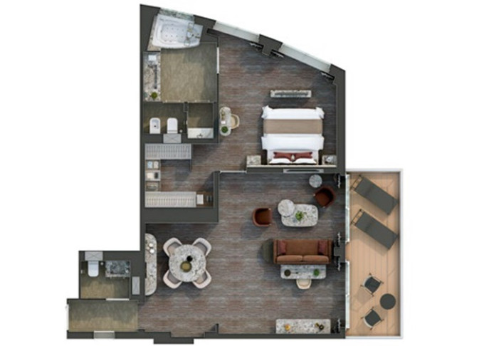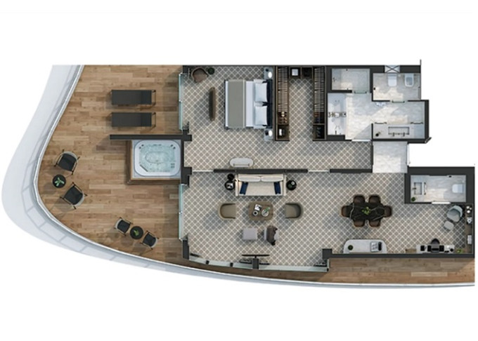 | O1 - Owner's 1 Suite 98 m² (vrátane balkóna 16 m²), spálňa, oddelená obývacia a jedálenská časť | 1 147 510 Kč 573 755 Kč za osobu | ||