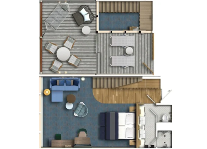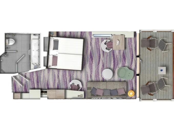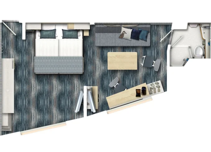 | JKAO - Junior Suite s balkonem 26 m² + balkon 7 m² se stolem. . paluba. Max 4 osoby. Výhody Junior Suite. | 351 726 Kč 175 863 Kč za osobu | ||